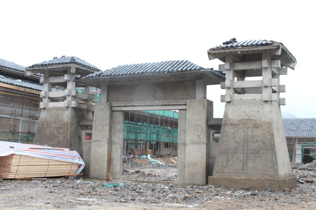 (梦都影视文化创意园为《霍去病》剧组打造的王府大门初具模型。陈寿坤 摄)
