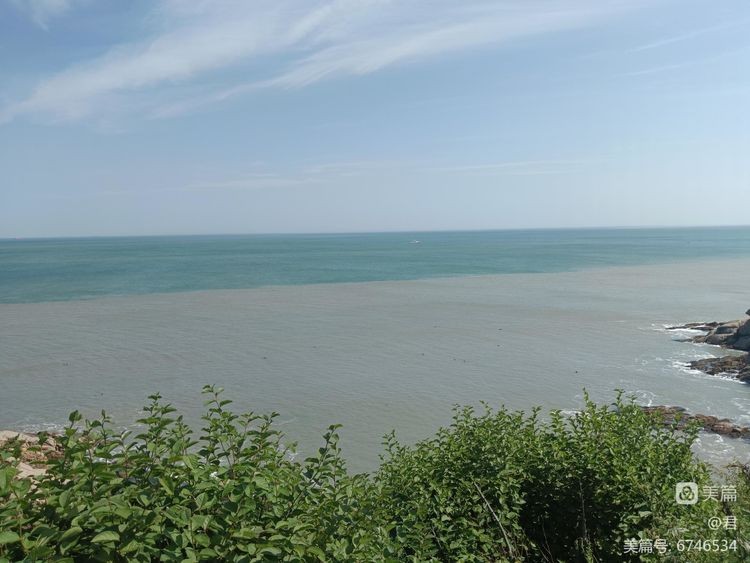 这里是黄渤海分界线 ,海面上清楚的看到两种不一样颜色的海水交融。