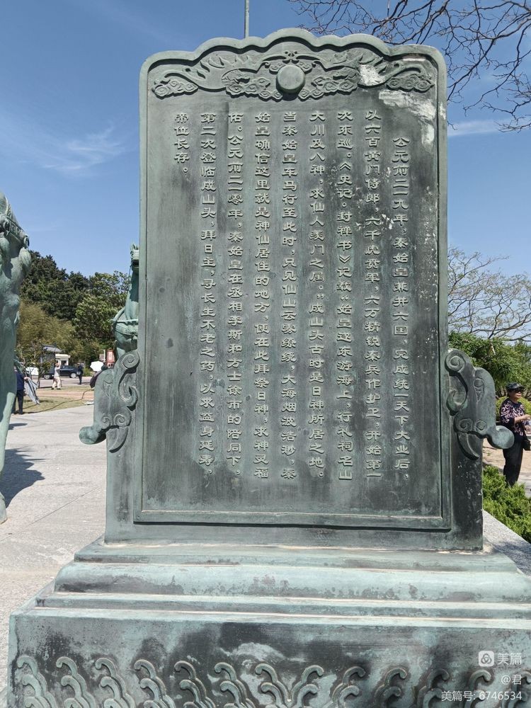 古时成山头被认为是日神居住地,据《史记》载:姜太公帮助周武王平商定天下后,曾在此拜日神迎日出,修日公祠。公元前219年与210年秦始皇曾两次驾临此地,拜祭日主 ,修长桥,求寻长生不老之药,留下了秦桥遗址、秦代立石、射鲛台,秦丞相李斯手书“秦东门天尽头”等历史遗迹和人文景观。