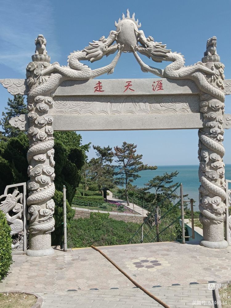 天尽头北50米处有一巨石为海龙石,因形似巨龙出海而得名。据传此石原为天界青龙,为保护本地渔民对抗天条而被镇压于此,百姓深感其恩并自发组织祭拜,数万年后青龙逐渐化为一块龙形巨石,继续护佑当地百姓,从此处望龙首、龙角、龙身等栩栩如生,惟妙惟肖恰似一条巨龙从海底扶摇而上,气势恢宏磅礴,正所谓:鲛龙出海任遨游,惊涛骇浪不低头!