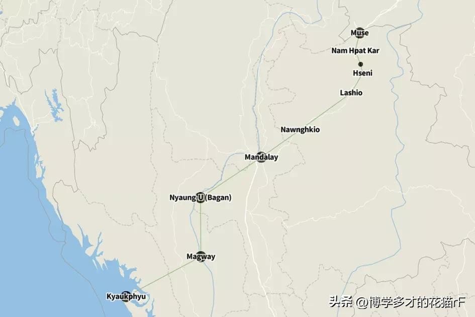 这条新线路将跨越约1000公里,分为两段,第一段从北掸邦的边境城镇木姐(Muse)到曼德勒,第二段连接曼德勒和皎漂。