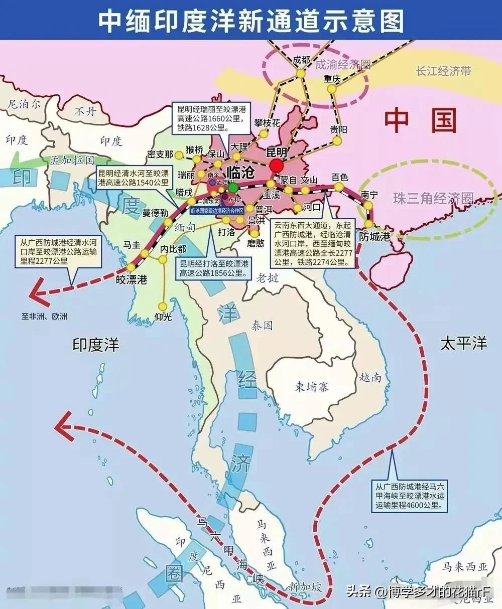 中缅通道是中国、日本、韩国进出印度洋最便捷的一条大通道,所承载的运输能力大得无法估量!