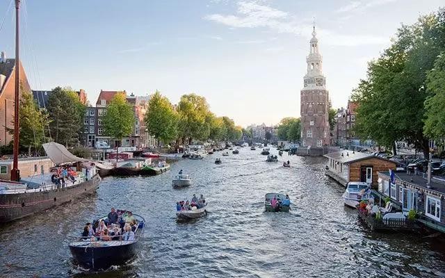阿姆斯特丹河道上泊有两千多家“船屋”,虽然是船屋但设施齐全。乘玻璃船游览阿姆斯特丹才能真正体会水城的独特韵味。游船穿行在著名的河道间,河道两旁是典型的荷兰传统民居建筑。阿姆斯特丹运河上的400多座桥梁勾画出运河最美丽的曲线,河水在阳光的照耀下闪闪发亮,在河中泛舟,细数河岸两旁的古老建筑和远处的风车,别有一番韵味。