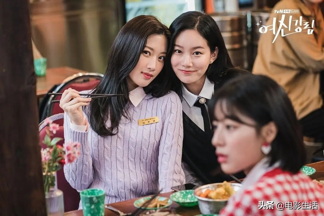 目前《女神降临》的故事背景已全部铺垫完毕,周京和学霸秀浩相遇同时,和校霸韩书俊之间的爱情线也冒出了苗头。一女两男三角恋设定偏老套,但架不住主角全员颜值高,剧情爆笑甜度爆表。