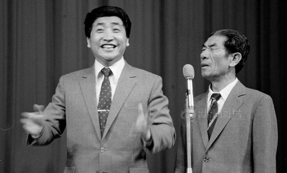 1981年,侯耀文(左)和石富宽表演相声。石富宽的师父是高凤山,高凤山本来与马三立同辈,石富宽也就跟侯宝林同辈,但由于高凤山的师父高德亮后来自降一辈,所以石富宽和侯耀文是同辈。两人搭档说相声,一起说了40多年。