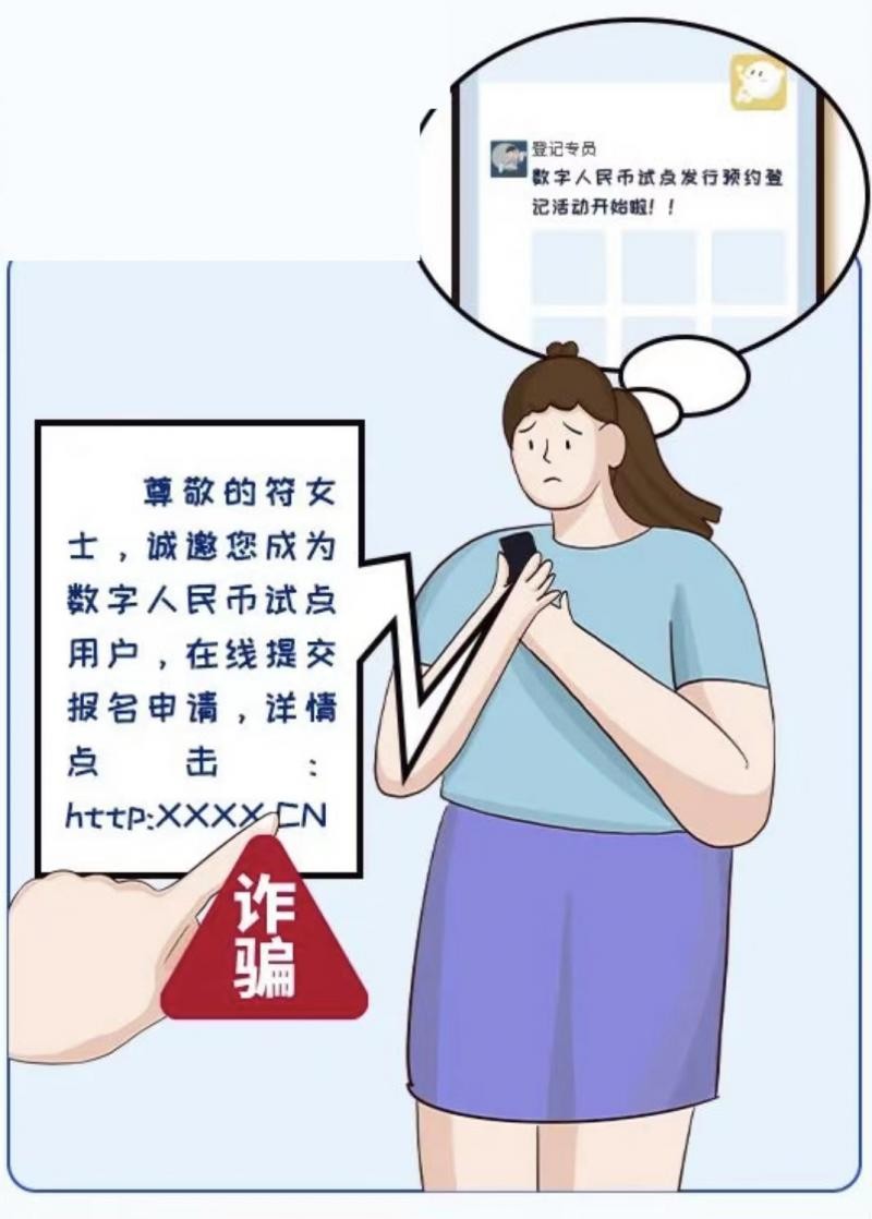 不法分子利用民众对于数字人民币的热情与好奇心,设计伪冒登记网站骗取个人信息与资金。民众在参与数字人民币试点活动时需留意,不要进入来源不明的“活动链接”或“活动页面”,不要在来源不明的页面中填写任何个人信息或转账。