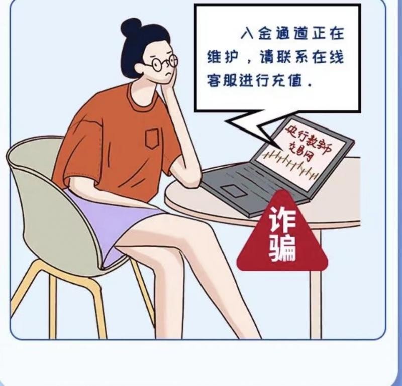 朋友向王某推荐“央行数字币”交易网站,称“央行数字币”价格实时波动,用户可以线上交易“央行数字币”获利,王某登录网站后点击充值,显示“入金通道正在维护,请联系在线客服进行充值”,咨询客服被告知要将资金转入一个个人银行账户。张某起疑后致电银行询问,确认这是一个诈骗网站。