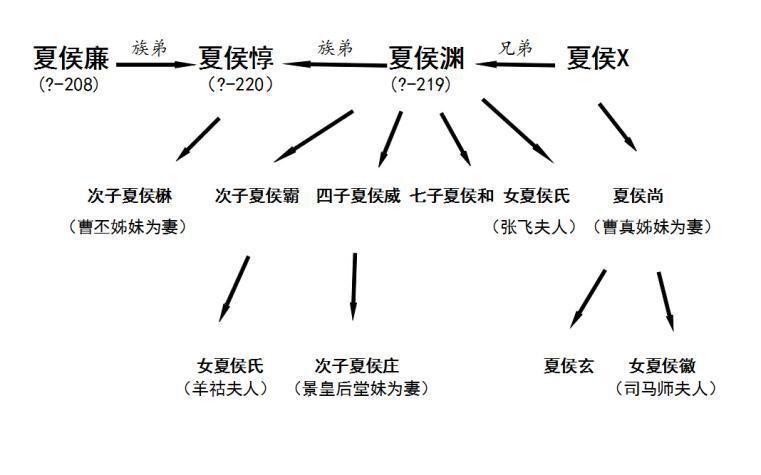 夏侯渊还有个亲弟弟,资料不详,故以夏侯X代替,之所要拿出来说,是因为生了个好儿子,夏侯二代的领军人物兼情圣夏侯尚。夏侯二代诸兄弟中大部分都有个共同特点就是生卒年不详,老大哥夏侯惇最有名的的儿子是次子夏侯楙,以没用闻名海内外,外不能治国,内不能安家,被弟弟陷害,跟老婆吵架,被魏延挂念了一辈子。然后混到了镇东将军,赵子龙已然哭晕在厕所。当然,这只是一个个例,夏侯二代们大部分还是十分出色的,夏侯渊的七个儿子,表现都还不错,甚至女儿都堪为极品,汉末乱世百姓凄苦难以想象,就连夏侯渊的女儿夏侯氏,13岁时都要自己出城砍柴补给家用,然后一不小心被与大哥二哥走散的张益达哦不张翼德同学撞见了(什么运气),顺手就拐过来当老婆使(残暴啊!人家还是小萝莉呢,放着我来!),两个女儿嫁给刘禅成为皇后,死后与张飞合葬。夏侯渊次子夏侯霸在魏最高任职讨蜀护军右将军,属于曹爽一派,高平陵政变后,因害怕被被牵连所以逃至蜀汉,偏偏还迷路了,差点饿死在路上。前面说了,他的姐姐几十年前被张飞拐走,他的侄女是刘禅的老婆,所以夏侯霸被接回来后,刘禅指着自己的儿子当着他的面说:此夏侯氏之甥也(谁还敢说刘禅白痴),光说不能显示诚意,官至车骑将军,车骑将军的职位仅次于大将军和骠骑将军,比什么前后左右四四四四将军都高,在魏汉两国都位极人臣,其难度仅次于打通关的于禁。