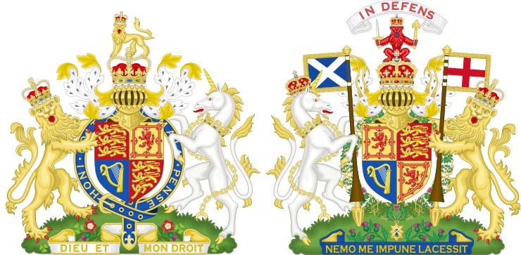 英国王室徽章左为英格兰版本,右为苏格兰版本