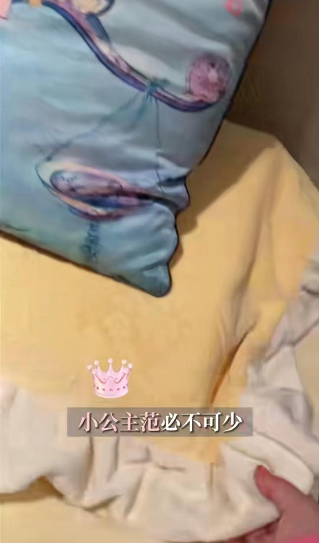 当镜头切换至冉莹颖的卧室,呈现出的是充满蕾丝床单、花边装饰以及一系列公主风格的床上用品。