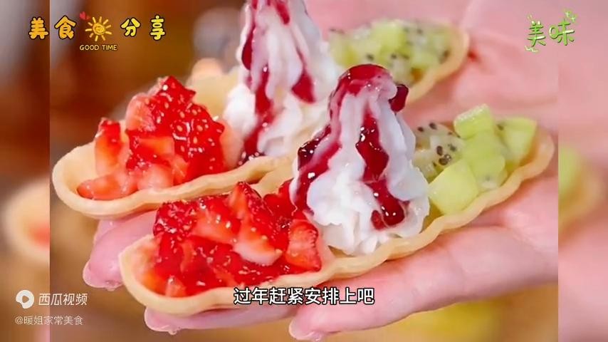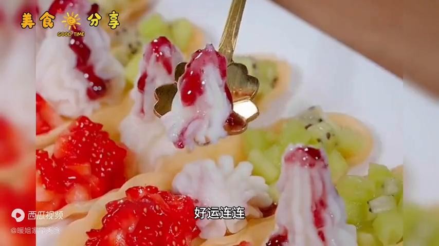 好吃的关键就是这个糯米团,好多酒店大厨都是偷偷用它来做特色菜,像冰淇淋脆筒一样,酥酥脆脆,可以直接吃。也可以5成油温下锅炸10秒,用裱花袋挤上调好的山药泥,搭配点孩子爱吃的水果,再淋上蓝莓酱,酸酸甜甜的口感,能有哪个小朋友不爱?过年赶紧安排上。