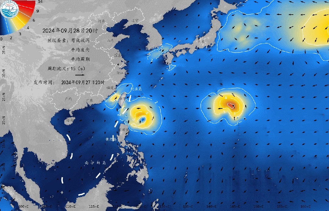 受“山陀儿”的影响,预计从明天开始,东海南部、钓鱼岛附近海域将生成大浪区,浪高2到3米,台湾海峡、南海东北部的大浪区维持,浪高3到4米,台湾以东洋面、巴士海峡、菲律宾以东洋面的大浪区维持,浪高4到6米,巴士海峡以东洋面台风中心附近的大浪区维持,浪高5到8米。