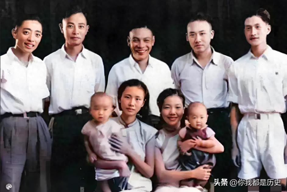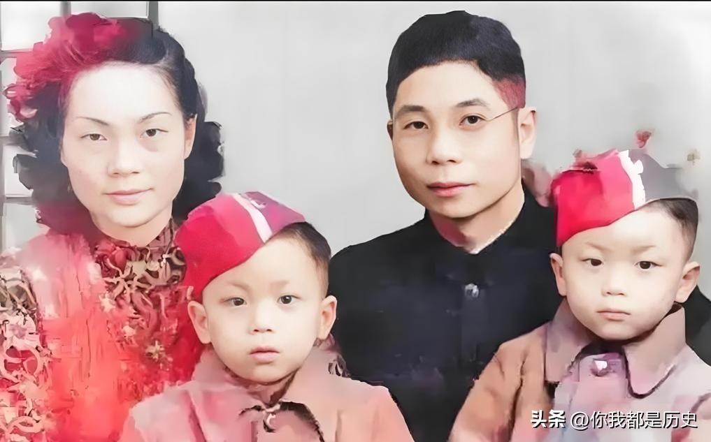 1943年,蒋孝严,蒋孝慈兄弟和父亲蒋经国的合影,两兄弟还不满一岁,非常可爱。蒋经国站在后排中间位置,笑容灿烂。此时的蒋孝严和蒋孝慈还不知道,她们的母亲章亚若已经去世,从此再也见不到生母了。