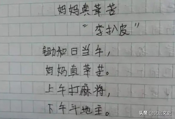 可以看出,这位小学生的妈妈上午忙着打麻将,下午还要赶场子去斗地主,还真是风风火火。