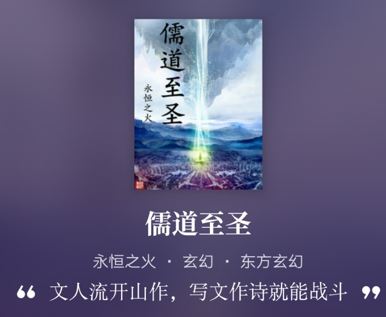 第四名:《儒道至圣》 作者:永恒之火