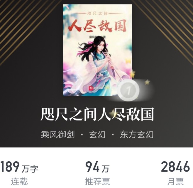第八名:《咫尺之间人尽敌国》 作者:乘风御剑