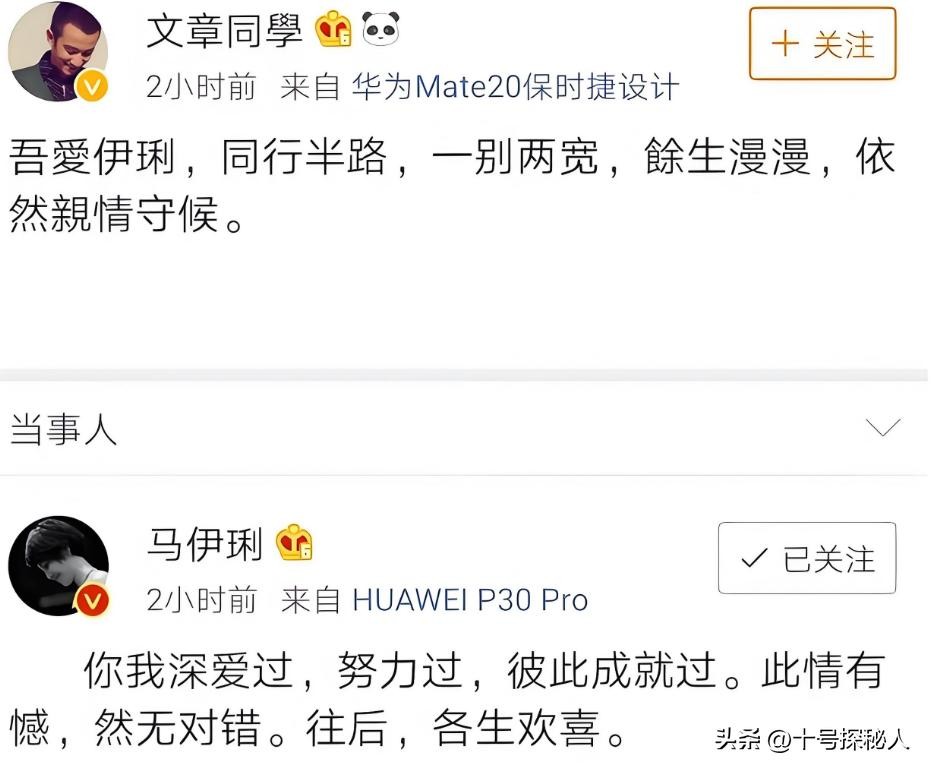 后面马伊琍就在社交平台上发文,和文章从此一别两宽。