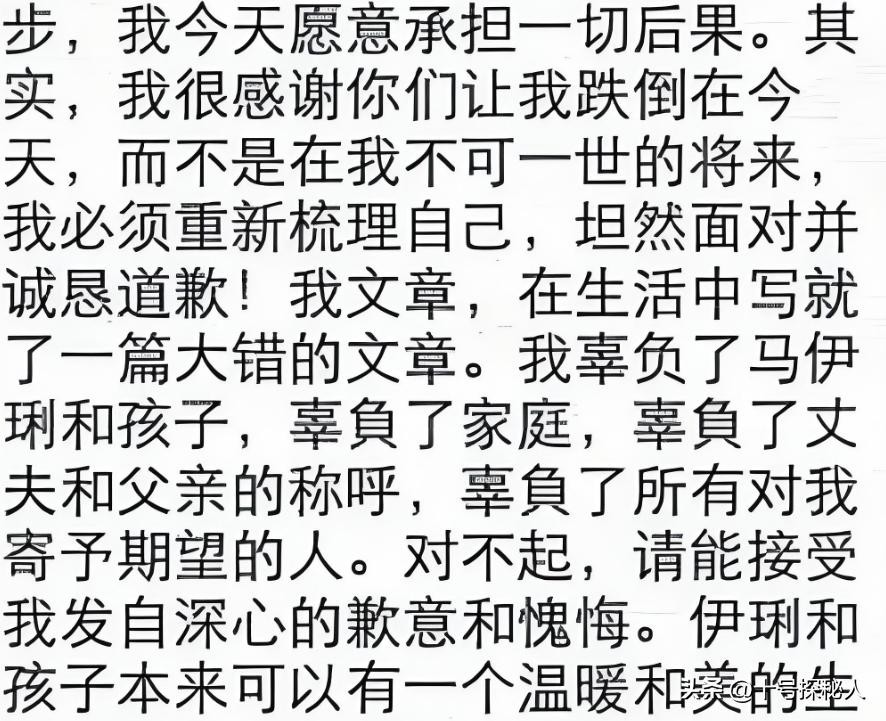 表示这一切都是自己咎由自取,态度坦然字字诚恳,发自内心的道歉和忏悔。