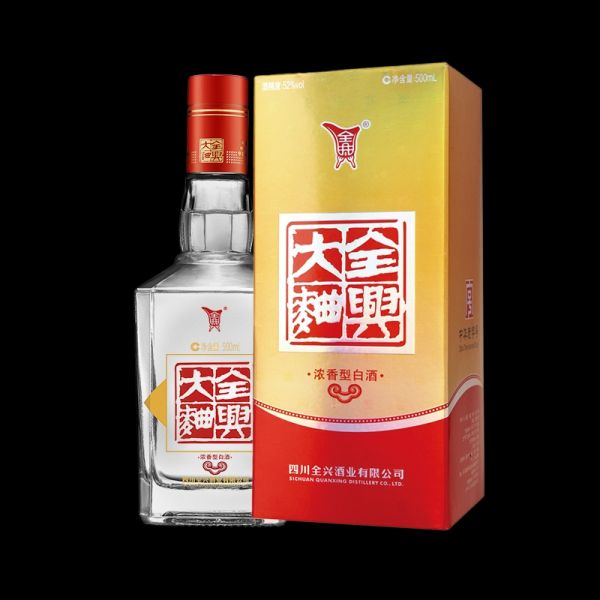全兴大曲,酒质呈无色透明,清澈晶莹,窖香浓郁,醇和协调,绵甜甘洌,落日爽净。系浓香型大曲酒。酒度分38度、52度、60度三种。