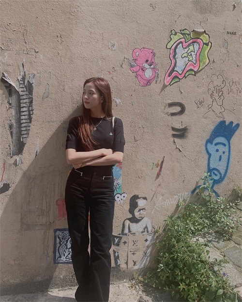 一身黑色休闲装的JISOO没有往日的甜美,反而多了几分成熟的感觉。黑色一直都是沉稳大气的颜色,搭配JISOO酷酷的表情,诠释的恰到好处。
