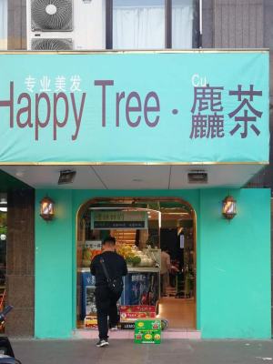 同样的字形水,换成三个鹿应该读什么呢?龙华路上这家理发店门口卖果汁的店给我们出了道题。