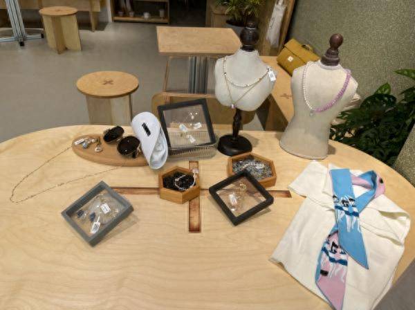 记者在店内看到,一楼咖啡卡座十个左右,座位设置偏休闲,且以一两人小休憩为主。入门处放着服装模特,正对大门设有首饰展览区。