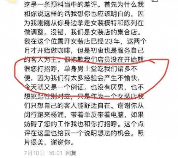 店员称,该发帖男子由于不接受告示内容而自行离开,并非店员赶走。“我们并没有拒绝消费者,也并没有拒绝男性顾客”。