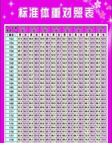 (下图:标准体重对照表)