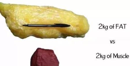 (下图:同样重量的脂肪和肌肉,脂肪体积是肌肉体积的三倍)
