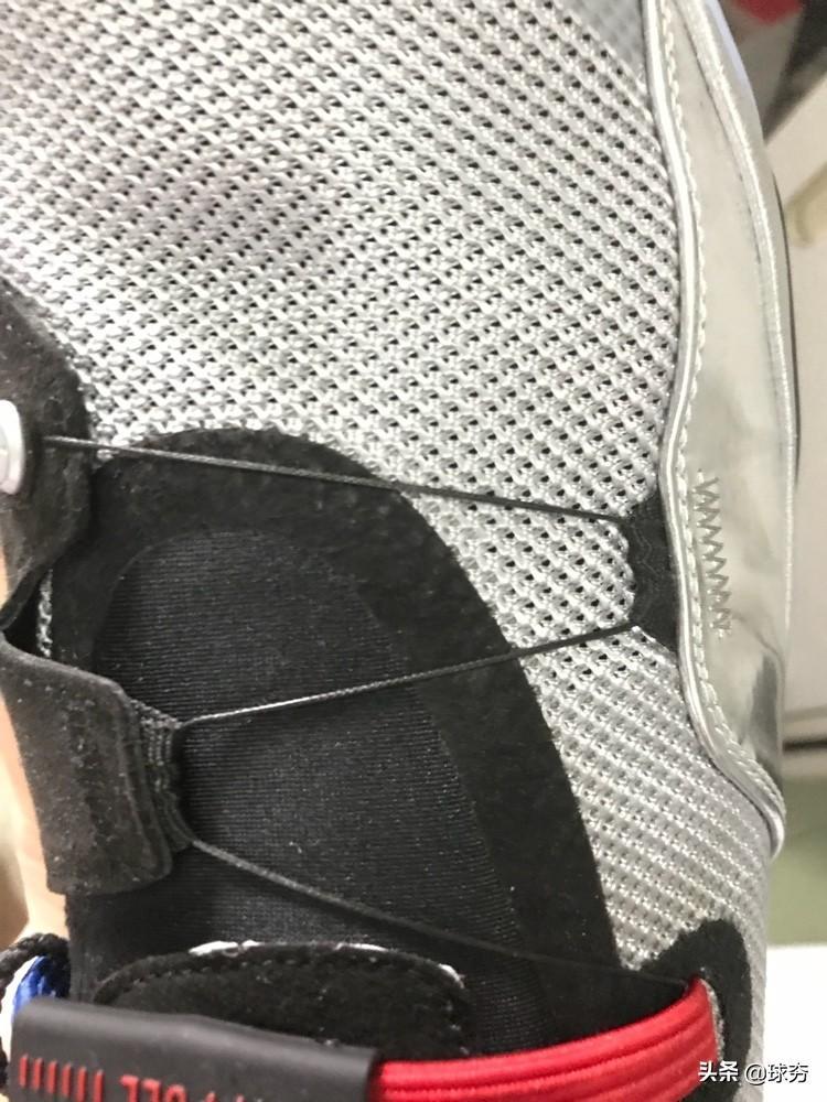 包裹性10分 AJ33最大的卖点就是fastfit的鞋带系统,通过两个拉环实现黑色“鞋带”的收紧与放松,玩味很足而且实战确实很有用,我平时穿44.5码,这双买了45码,穿两对袜子然后拉紧鞋带,整个脚都和鞋捆在一起了。