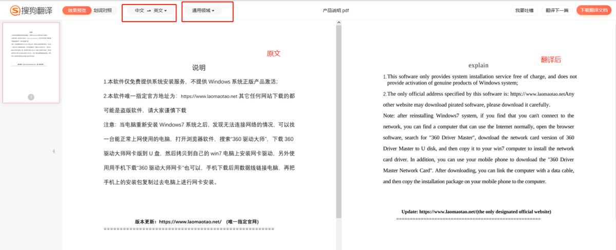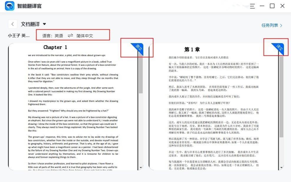 【文档翻译】也很专业,支持一次性上传多个文档,可设置翻译语种,完成后即可预览,译文会直接显示在原文右侧,方便进行校对查看,还会直接保存到电脑桌面,真的很贴心。