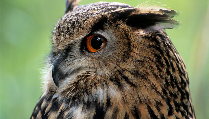 猫头鹰眼周的羽毛呈辐射状,细羽的排列形成脸盘,面形似猫,因此得名为猫头鹰。它周身羽毛大多为褐色,散缀细斑,稠密而松软,飞行时无声。猫头鹰的雌鸟体形一般较雄鸟为大。