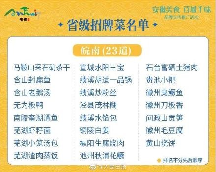 【吃货看过来!63道安徽招牌菜出炉】徽州臭鳜鱼、胡适一品锅、马鞍山采石矶茶干、芜湖虾籽面、无为板鸭、太和板面……近日,安徽文旅厅主办活动推选出千余道安徽招牌菜,包括63道省级招牌菜、160道市级招牌菜、747道县级招牌菜。戳菜单你最喜欢哪一道?