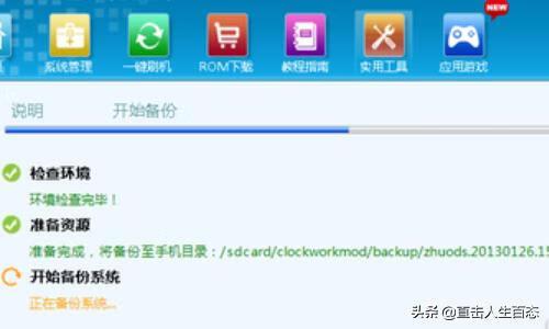 4开始备份 在sd卡中 ,若想恢复则重启到recovery模式→backup|restore→restore恢复即可