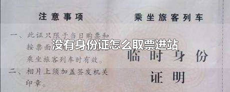 没有身份证可以使用以下方式取票进站,第一,带着户口本,凭借订单号到人工售票处取票,第二,到车站内专门的制证窗口办理临时身份证,然后取票进站,第三,在车站临时身份证自助补办机办理临时身份证,打印出来再去取票。