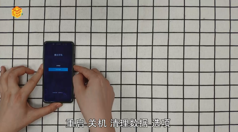 3、这个时候,你的手机屏幕上面会出现有好几个选择,一般都是:“重启”、“关机”、“清理数据”选项。