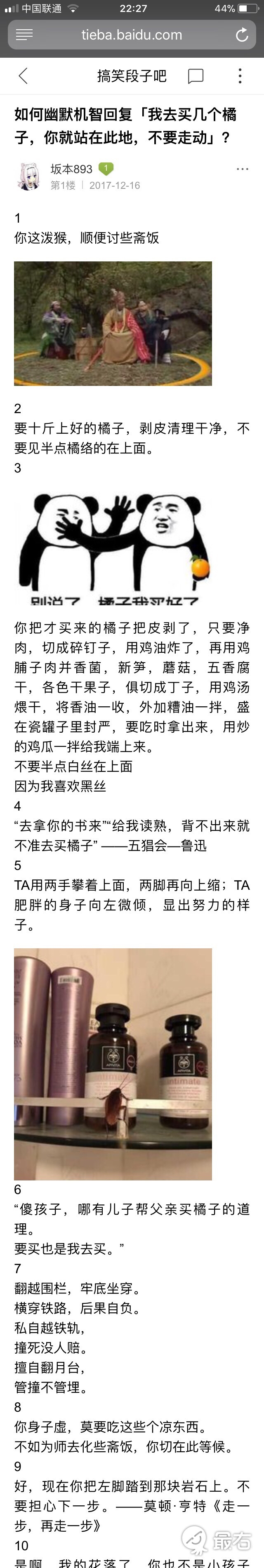 如何幽默机智的回复“我去买几个橘子,”你就站在此地,不要走动?
