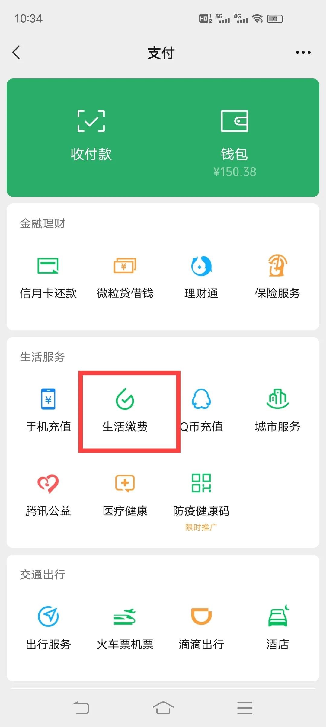 4、点击生活缴费