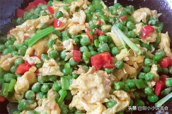 发芽的豌豆倒是不碍事,毕竟豌豆芽也是很好吃的,心里想着就用豌豆对付一下算了,而且新鲜的豌豆粒营养美味,说不定做好了以后,胃口就好了。鲜豌豆粒一般和肉类食材比较般配,因为一直都爱吃豌豆粒,所以我用豌豆粒炒过猪肉、牛肉、鸡肉。冰箱里还有牛肉,不过有些偷懒,不想处理,除了牛肉,只剩下鸡蛋。豌豆粒直接炒鸡蛋是不大入味的,不过幸好这个没有难倒我,好不好吃不重要,有了想法就行动,按照自己想的做出来,果然没有让自己失望。想不到在豌豆粒粒打入3颗鸡蛋,原来这么好吃,端上桌盘子很快见底了,解馋,下面就来分享一下吧!