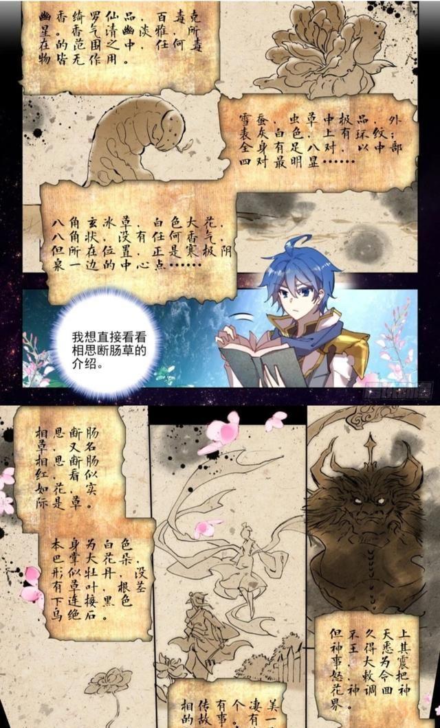 霍雨浩翻开幽香绮罗仙品(幽幽)给他的书,发现这竟然是唐门失传已久的毒经,不敢大意,翻开书认真仔细读了起来。这本书基本介绍了冰火两仪眼所有的药材,种类繁杂,介绍详细。