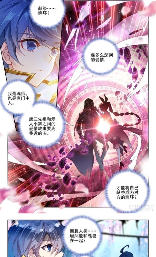 接着霍雨浩读到了唐三小舞自己的故事,这个故事大家都熟悉,就是小舞摘取了一朵相思断肠红,后来小舞为唐三献祭,唐三用相思断肠红将小舞救活,复活。