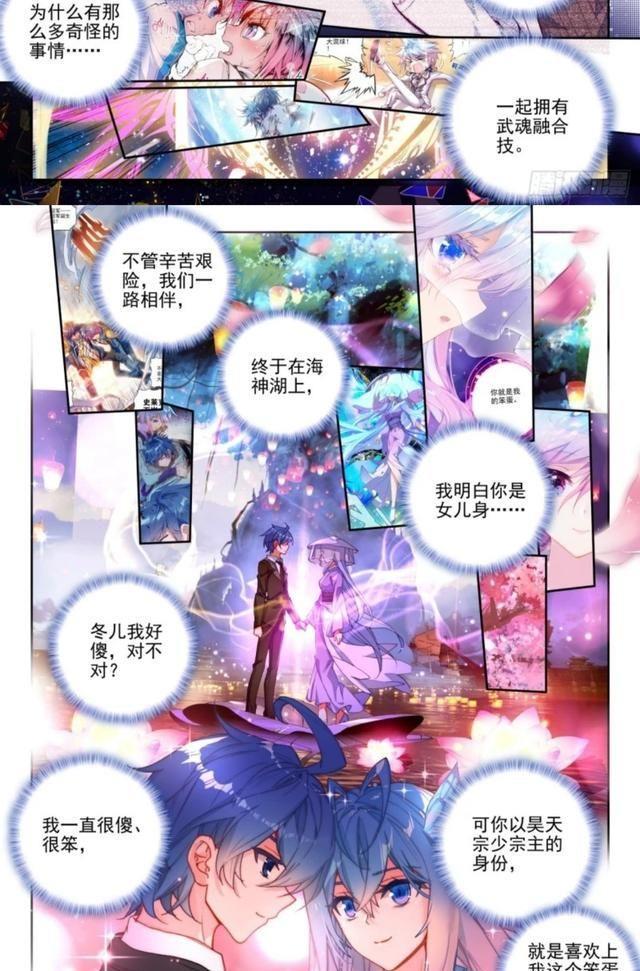 冬儿,我也愿意像唐三小舞一样,献祭成为你的魂环,永远守护着你。永远!霍雨浩对王冬儿的爱意,在这一刻达到了一个新的高度,他愿意用自己的一切去呵护她,再也不会受到别的东西干扰了。