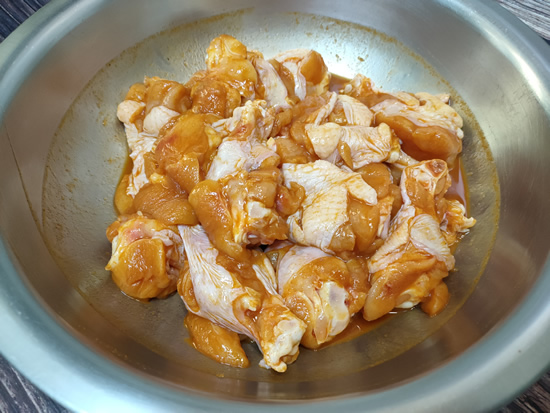 腌制鸡翅根时,除了加腌料,还要加适量的清水,这是炸鸡肉质鲜嫩多汁的关键。