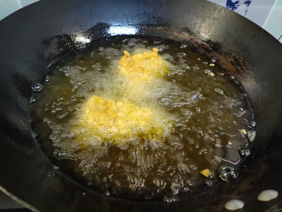 7、锅里加入多一些的食用油,油温烧至五成热,把处理好的鸡翅根下锅油炸,全程保持中火慢炸,炸鸡翅根的时候大概需要5分钟左右。