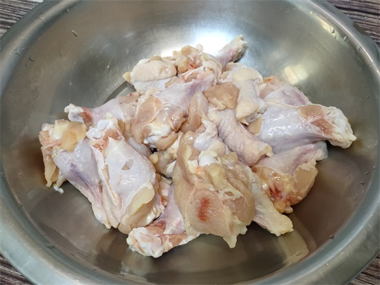 1、把新鲜的鸡翅根用菜刀划开几个口子,划到骨头处,然后放在盆中,加入没过鸡翅根的清水,浸泡1小时以上,泡出鸡翅根中残留的血水,最后把鸡翅根控干水分备用。