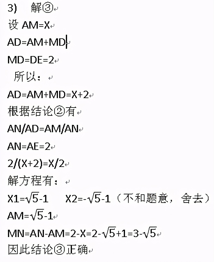 ③,充分利用②的条件,根据公式AN/AD=AM/AN,列出方程就可以解决问题