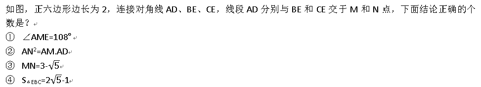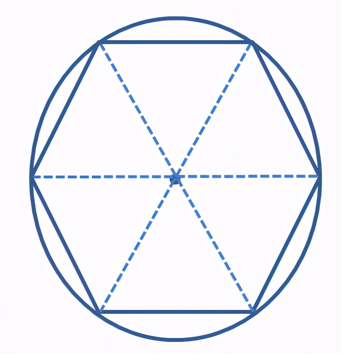 正六边形外对角线的交点是外接圆的圆心,把正六边形分成六个等边三角形