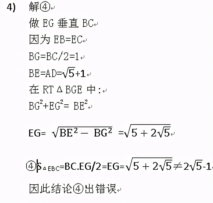 ④,利用全等、等腰三角形求出ΔEBC的高,就求出了他的面积。