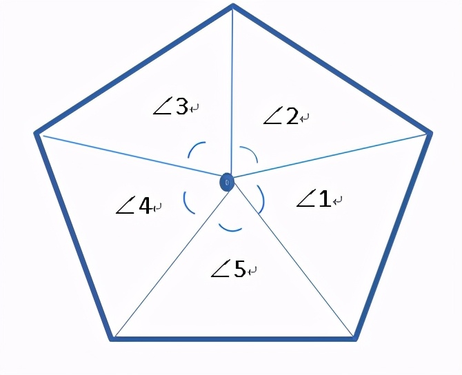 上图n边形,在中心找一点,连接中心和各个顶点,把五边形分成五n个三角形,求多边形的内角和转化为求三角形内角和问题。
