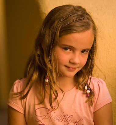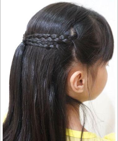 小女孩侧梳直发编发发型